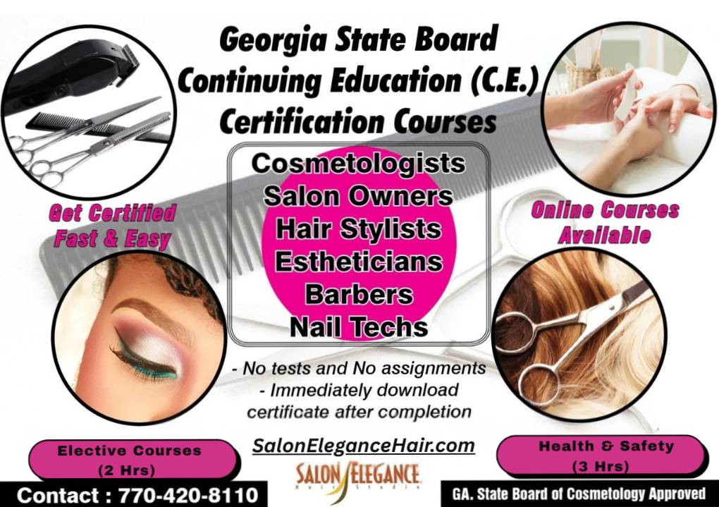NOTE: Please complete registration form on our CEU Course App belowChoose course selection in reference to fulfilling requirements for Georgia State Board of Cosmetology and Barbers.